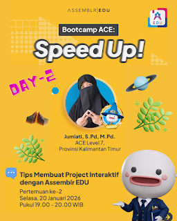 Memasuki hari kedua Bootcamp Speed Up Goes to ACE Level 4, suasana kegiatan terasa semakin hangat dan penuh semangat. Para peserta mengikuti sesi dengan antusias sejak awal, menyambut materi yang disampaikan oleh Ibu Jumiati (ACE Level 7). Dengan gaya penyampaian yang komunikatif dan ramah, beliau berhasil menciptakan atmosfer belajar yang nyaman, sehingga peserta merasa lebih percaya diri untuk bereksplorasi dan bertanya selama kegiatan berlangsung secara daring melalui Zoom Meeting.
