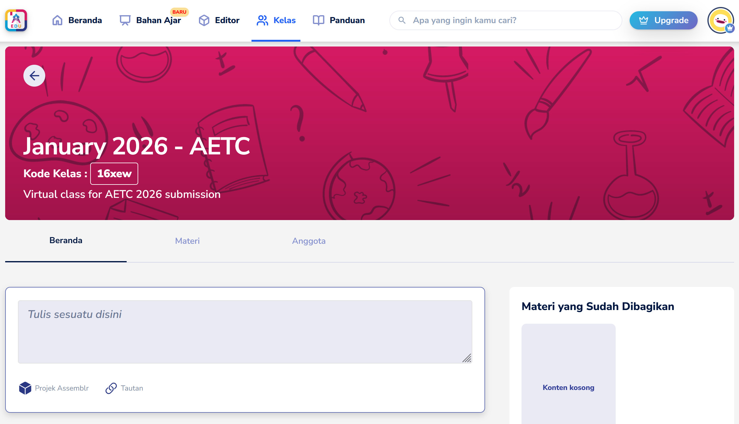 Lebih lanjut, AETC (Assemblr EDU Teacher Challenge) dijelaskan sebagai ajang tantangan bulanan bagi para guru untuk menampilkan karya dan proyek pembelajaran terbaik berbasis Assemblr EDU. Prosesnya dimulai dari pendaftaran melalui platform atau kanal resmi Assemblr EDU, kemudian peserta mengunggah proyek sesuai dengan tema yang ditentukan. Karya yang masuk akan dinilai berdasarkan kreativitas, interaktivitas, serta efektivitasnya sebagai media pembelajaran. Melalui AETC, guru tidak hanya berkesempatan meraih poin besar, tetapi juga mendapatkan apresiasi dan pengakuan atas karya yang dibuat.