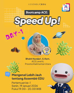 Bootcamp Speed Up Goes to ACE Level 4 resmi dimulai pada Senin, 19 Januari 2026 dan akan berlangsung selama lima hari hingga Jumat, 23 Januari 2026. Kegiatan yang diselenggarakan oleh Assemblr EDU ini dilaksanakan secara daring melalui Zoom Meeting, sehingga dapat diikuti oleh para pendidik dari berbagai daerah. Hari pertama bootcamp menghadirkan Ibu Bhakti Hundari (ACE Level 6) sebagai mentor utama, yang membuka kegiatan dengan materi pengenalan platform Assemblr EDU serta ekosistem ACE Community. Sejak sesi awal, suasana kegiatan sudah terasa interaktif, hangat, dan penuh semangat belajar.